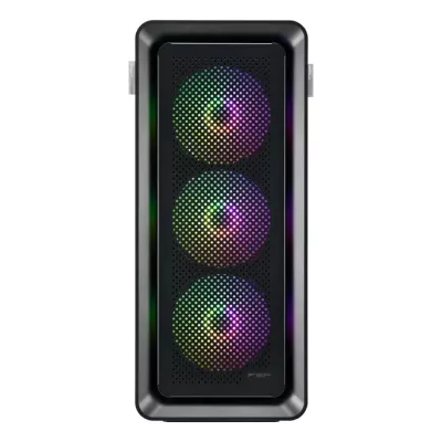 - خنکسازی فوقالعاده: چهار فن ۱۴۰ میلیمتری ARGB نهتنها عملکرد خنککنندهای عالی دارند، بلکه با نورپردازی جذاب، جلوهای حرفهای به سیستم شما میبخشند. طراحی آیرودینامیک این کیس جریان هوای بهینهای را برای سختافزارهای پرمصرف تضمین میکند.