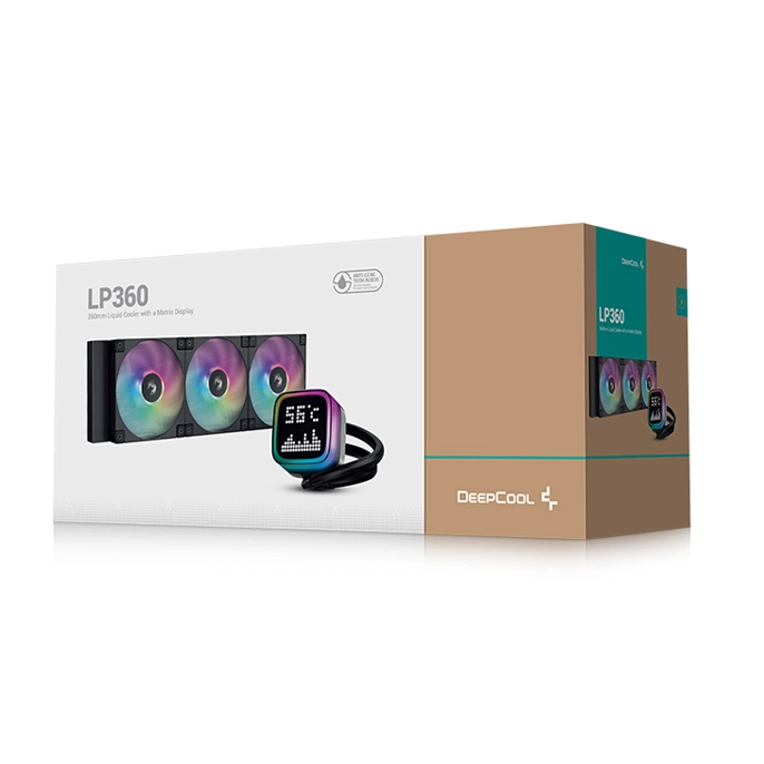 دیپ کول LP360 به یک صفحه نمایش پیکسلی سفارشی مجهز شده است. این صفحه نمایش ماتریس نقطه‌ای به خوبی با شناسه پیکسلی DeepCool که در تمام خطوط تولید این شرکت وجود دارد، هماهنگ است. این صفحه نمایش از نوع LED Digital Display است و شما می‌توانید این صفحه نمایش را با استفاده از شبکه پیکسلی ۱۴ در ۱۴ مطابق سلیقه خود شخصی‌سازی نموده یا به سادگی یکی از گزینه‌های گرافیکی از پیش تعیین شده موجود در DeepCreative را انتخاب کنید.