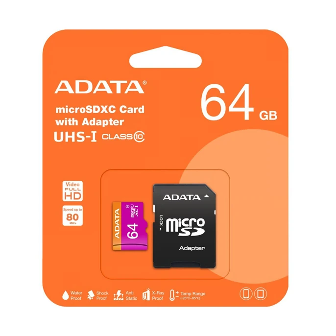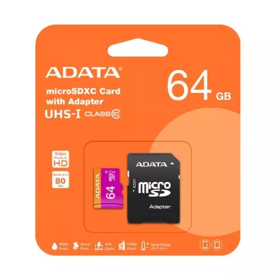 ADATA MicroSDXC UHS-I U1 R80W10 Memory Card-64GB+Adapter