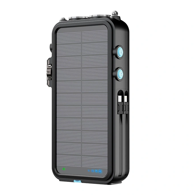 قابلیت شارژ پاوربانک از 4 طریق (خورشیدی/کابل متصل/درگاه تایپ سی/میل لنگ دستی)
