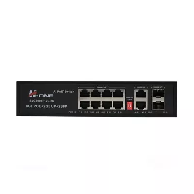 2 پورت Sfp, دارای 2 پورت Uplink , دارای 8 پورت POE